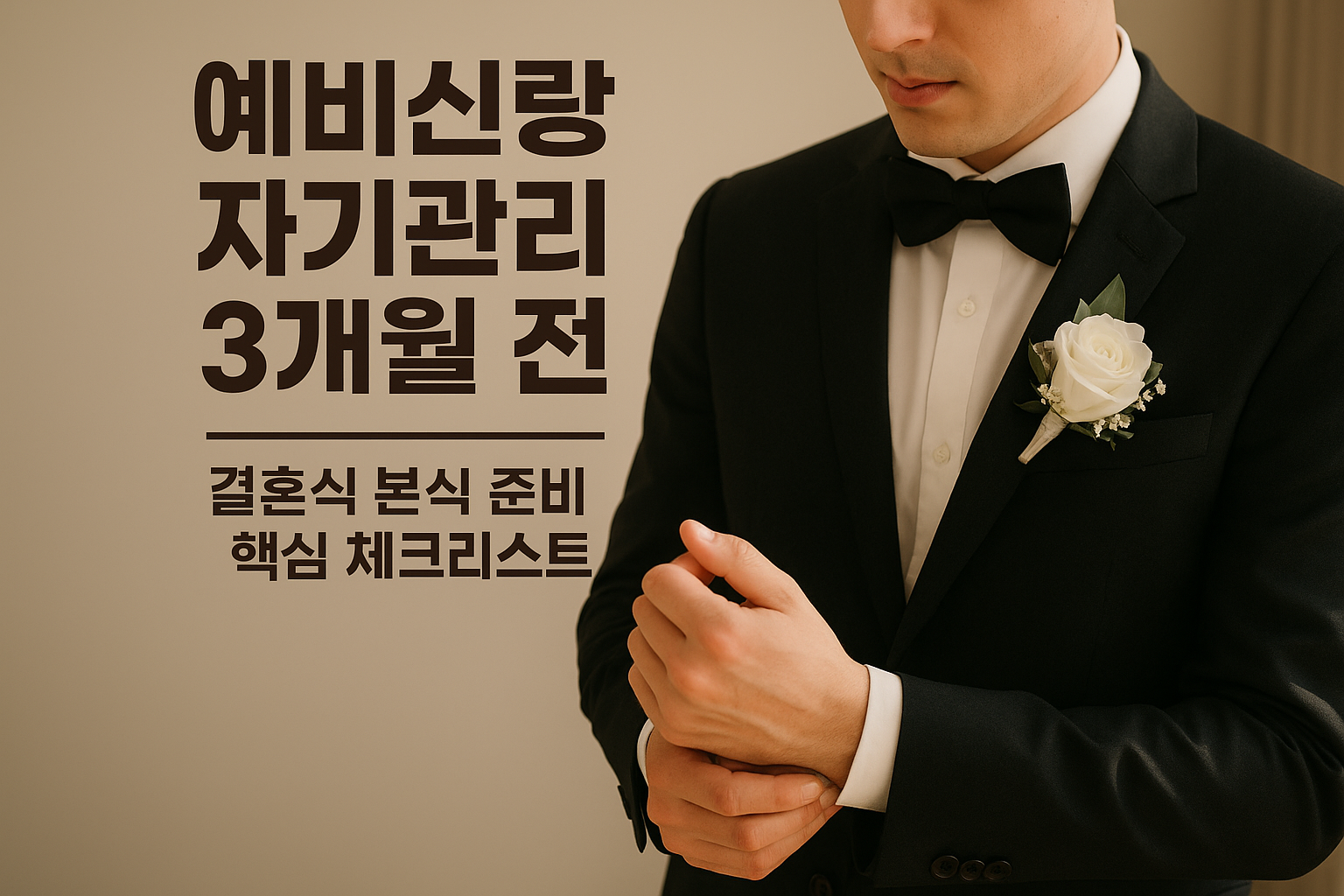 다음 글에서는 예비신랑 자기관리 1개월 전|최종 점검 루틴을 통해 당일 직전의 컨디션 조율과 예식 직전 팁을 안내드리겠습니다.